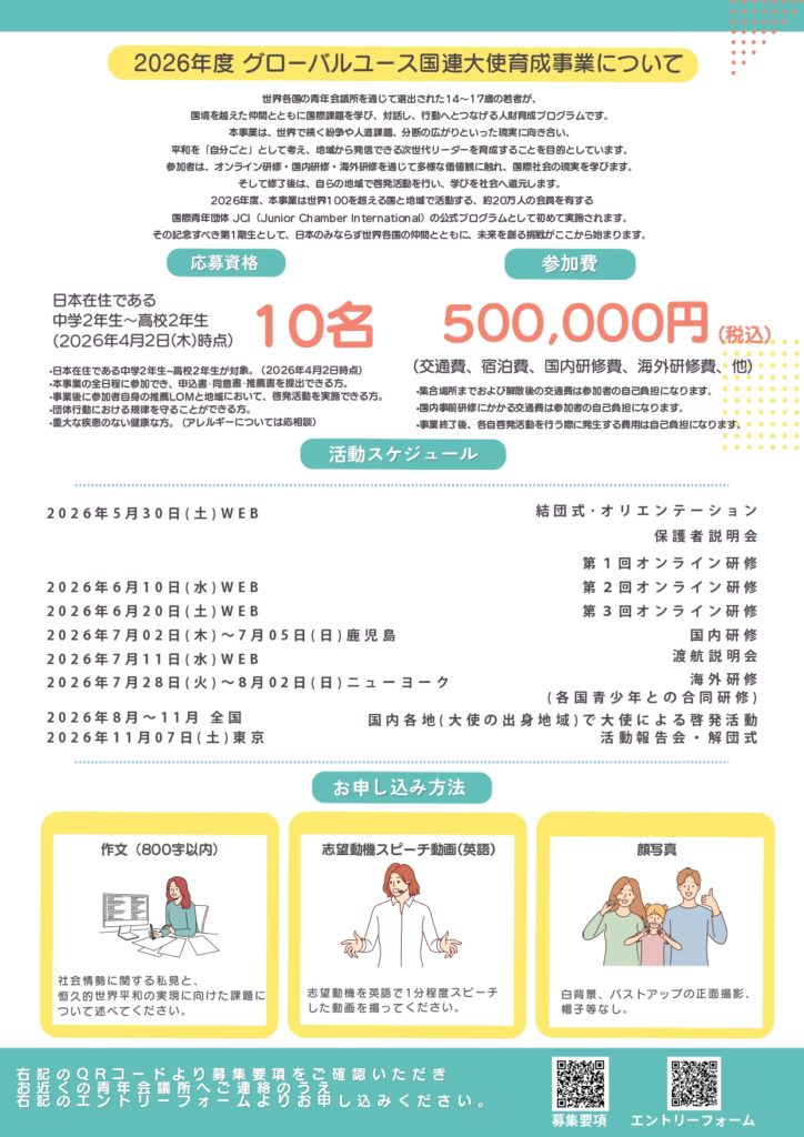 世界各国の青年会議所を通じて選出された14~17歳の若者が、